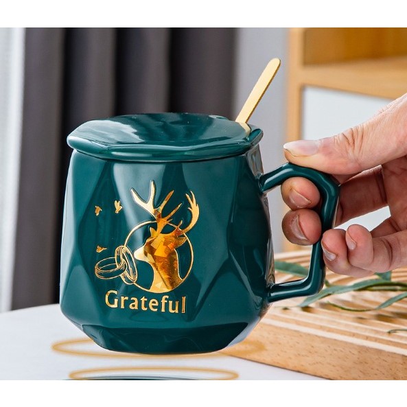 Set a cup of green deer cupboard cup, spoon cover, gift bag used as gifts, drink water to make coffee ... - round cup