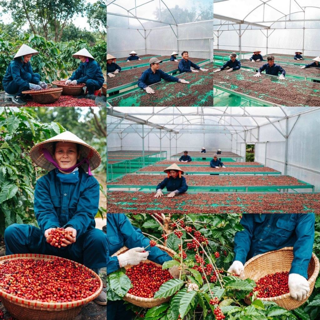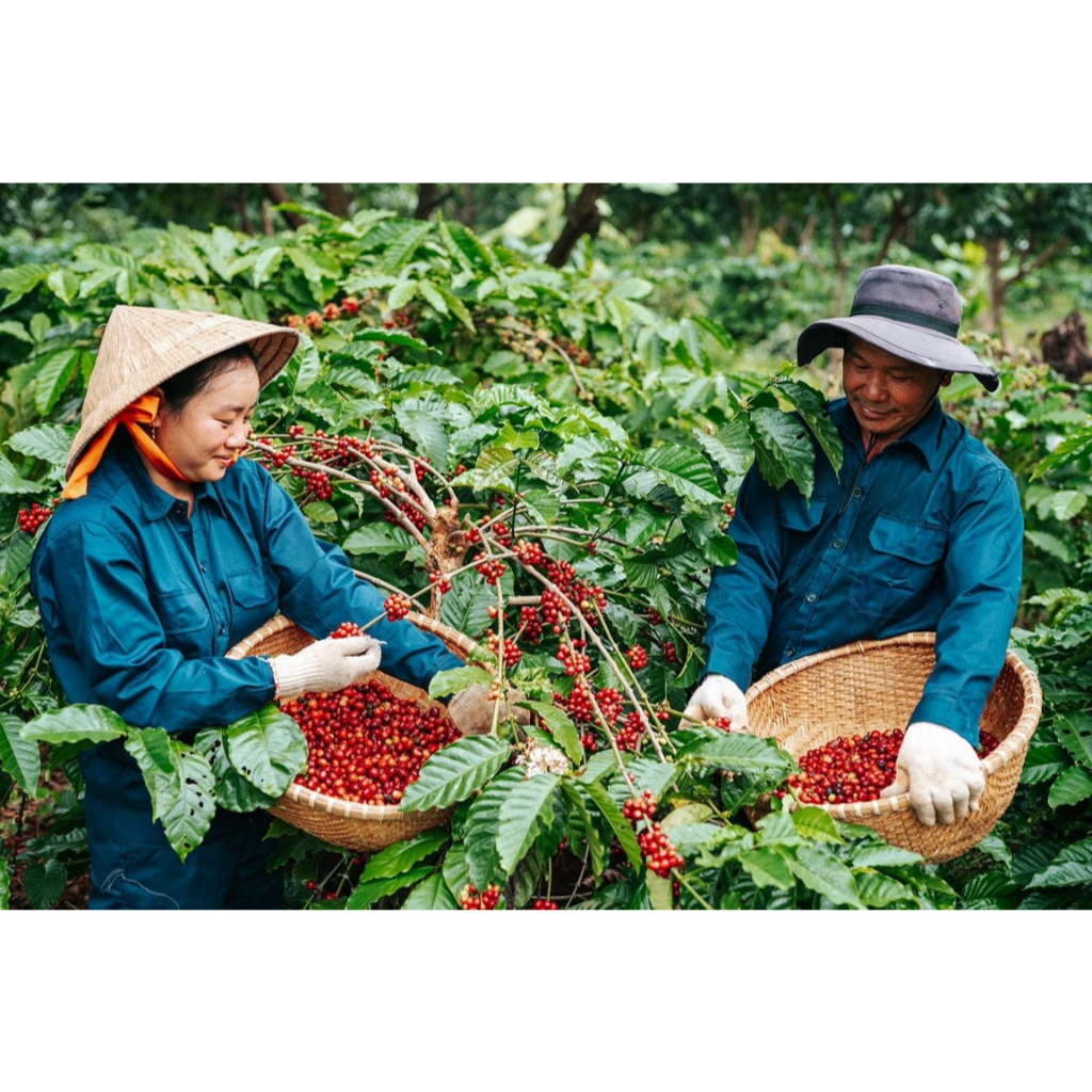 使用されているコーヒー豆は、ベトナムのダクラクとラムドンの高地で栽培された厳選されたもので、特にカウダットの標高1600メートル以上の地帯で収穫されたアラビカ種とロブスタ種の組み合わせが、独自の風味を生み出しています。豆は100%自然に熟した状態で収穫され、伝統的な方法で木材を使って焙煎されており、純粋で濃厚な味わいを実現しています。