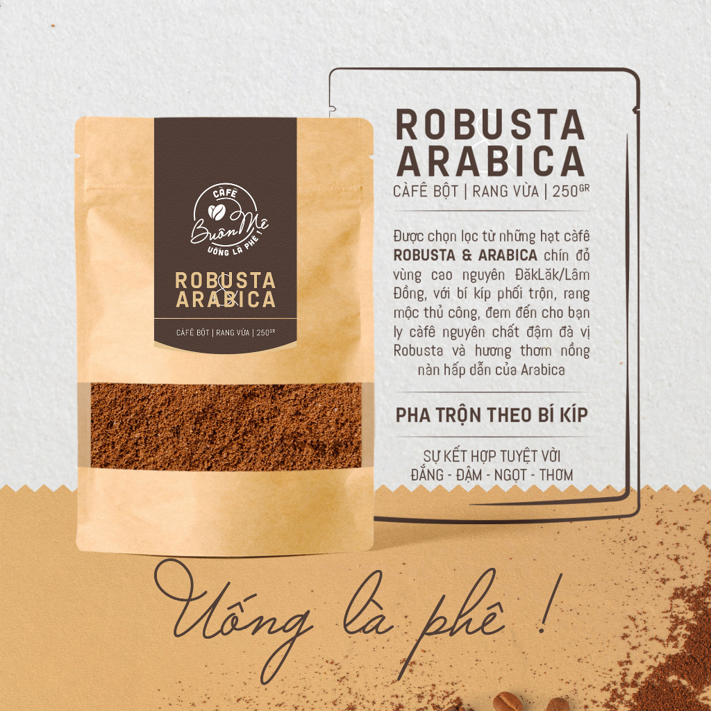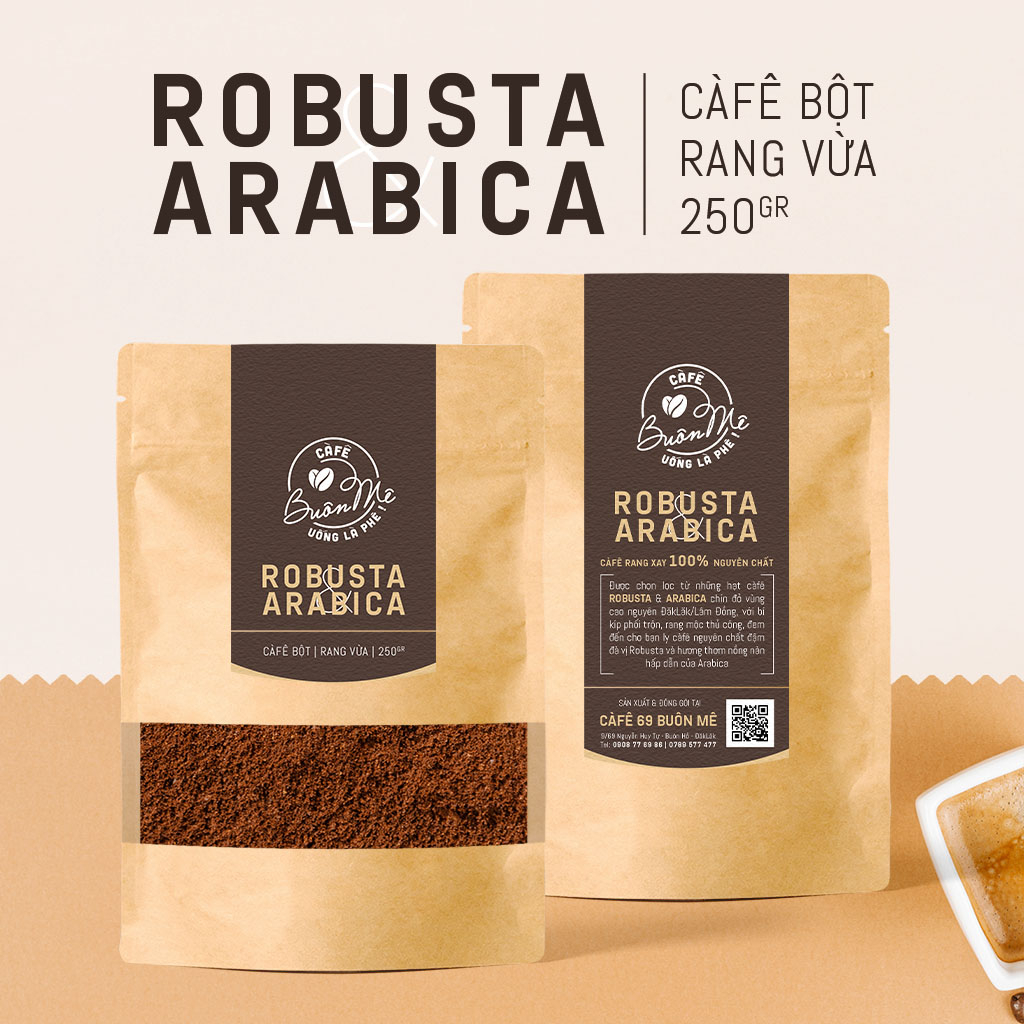 Ground coffee (Robusta 60 mixed Arabica 40) roasted pure wood 69 BUON ME 250g for filter