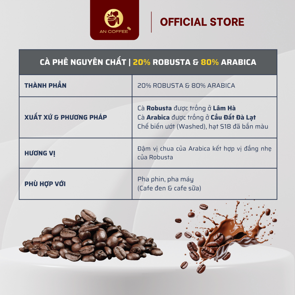 Premium Pure Coffee - An Coffee, 20% Robusta & 80% Arabica, Strong sour taste of Arabica combined with mild bitterness of Robusta - 1000gr - unground beans