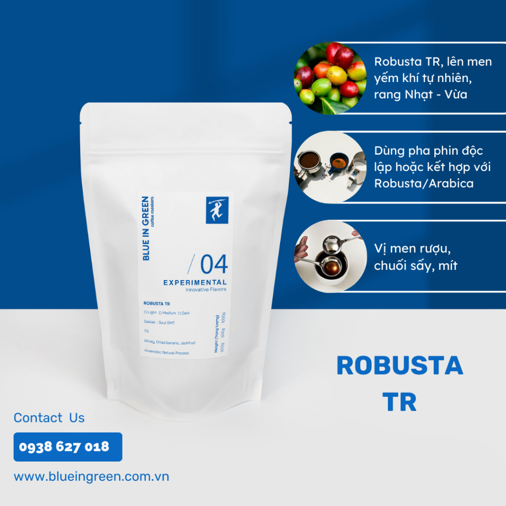 TR Robusta Roasted Coffee - Light-Medium Roast - Blue in Green Coffee Roasters - 200gr - whole beans