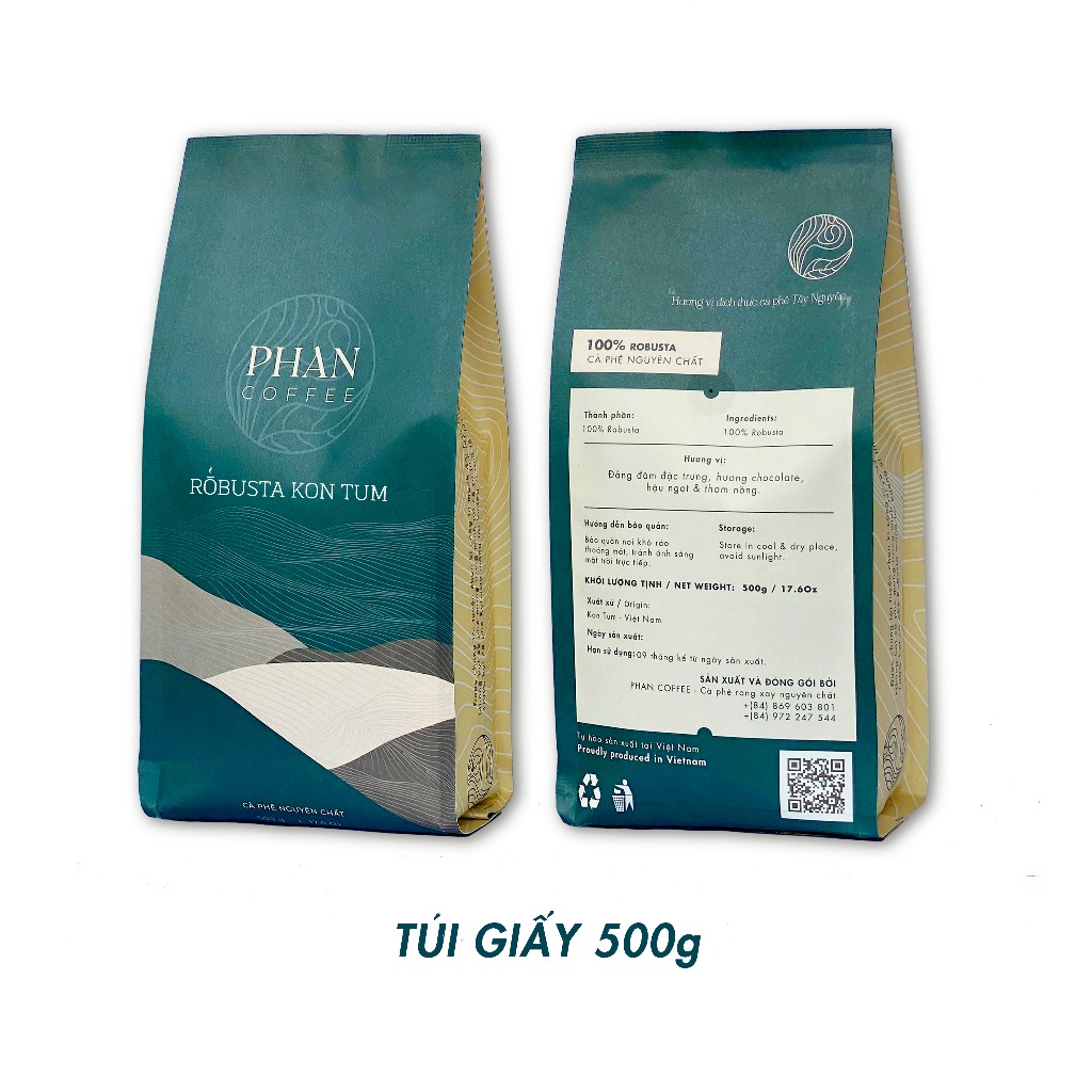 ROBUSTA KON TUM pure roasted coffee with a rich, sweet aftertaste, brewed in a machine filter - Phan Coffee - 100gr - whole beans