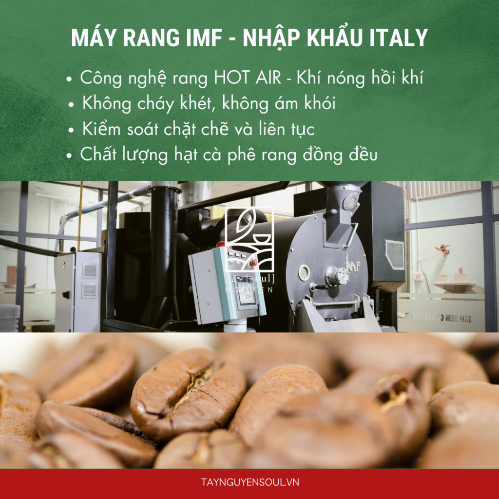 新鮮な生豆を使用し、IMF Italyの焙煎機で丁寧に毎日ロースト。コーヒーの持つ自然な風味を大切にし、化学薬品や香料を一切使用していません。これにより、口当たりが良く、持続する余韻と豊かなアロマをお楽しみいただけます。ダクラクとラムドンの優れた栽培環境で育てられたコーヒー豆が持つ、自然で純粋な味わいをご堪能ください。