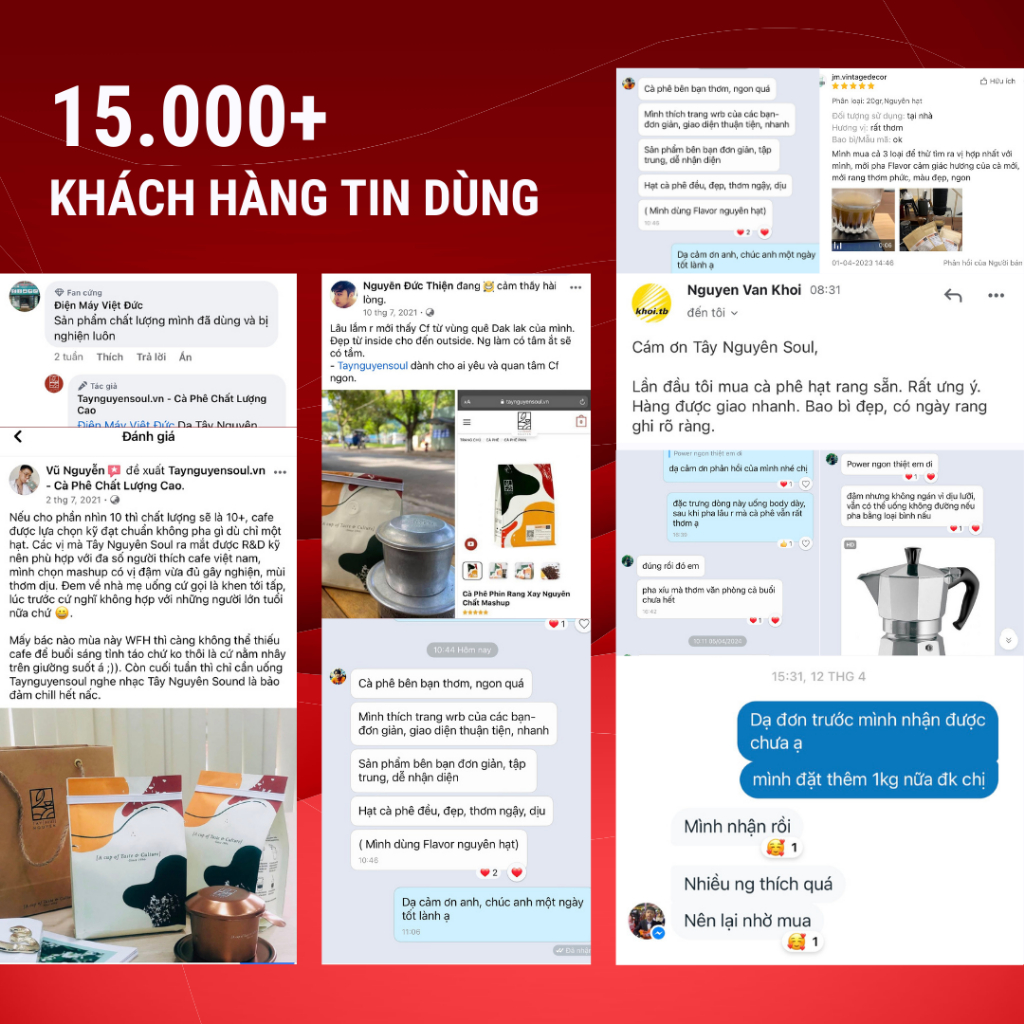 厳選された原材料を使用し、生産から焙煎、包装まで徹底的な品質管理を行っています。私たちのコーヒーは、ベトナムの本物の風味をお届けし、日常のコーヒータイムを特別な時間に変えます。