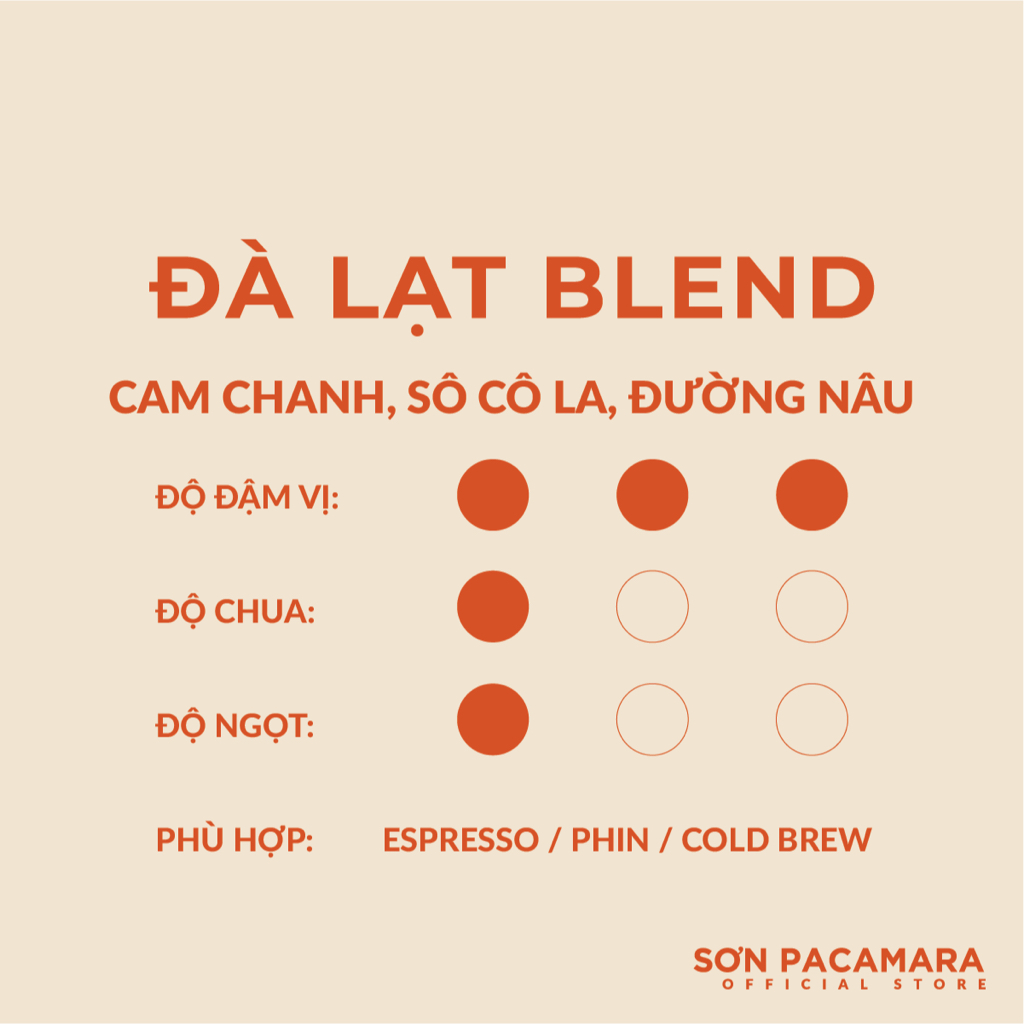 ダラットブレンドは、特別な発酵プロセスを経て、スペシャルティコーヒーの基準を満たす品質を誇ります。ダラット地方の高地で栽培された豆を使用し、標高1300 - 1400mの農園から収穫された新鮮なコーヒー豆を提供します。焙煎日はパッケージに記載されており、焙煎後12ヶ月間保存が可能です。