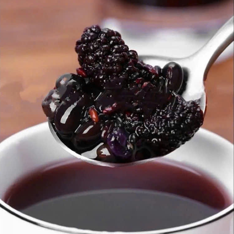 黒ゴマに含まれるビタミンEやカルシウムが髪を内側から育み、黒桑の実のビタミンCと抗酸化物質が抜け毛を防ぎ、髪の根元を強化します。黒クコの実は腎臓の機能を高め、血行を促進することで自然な黒髪をサポートし、黒もち米のビタミンB群が艶やかな髪へと導きます。さらに、緑芯黒豆のタンパク質とミネラルにより、髪の成長を促進し、密度のある健康的な髪へと導きます。