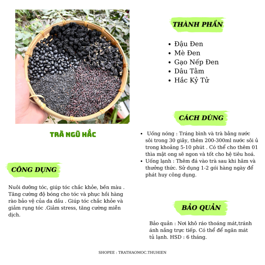 An Hien Five Black Herb Tea, Helps grow thick, healthy hair quickly, smooth black hair, Cold-dried ingredients - Set of 30 packs