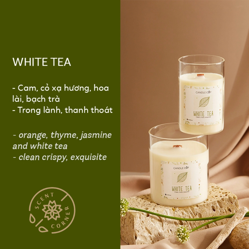 大豆ワックス、コットン芯、エッセンシャルオイル(白茶、ジャスミン、オレンジ、ムスク)