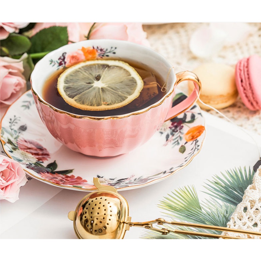 高級ボーンチャイナならではの薄さと透光性は、紅茶の色合いを美しく映し出し、視覚的な愉しみも提供します。また、優れた保温性により、最後の一滴まで適温で紅茶を味わうことができます。パステルピンクを基調とした優美なデザインは、モダンなインテリアにも違和感なく溶け込み、空間に優雅さと品格を添えます。