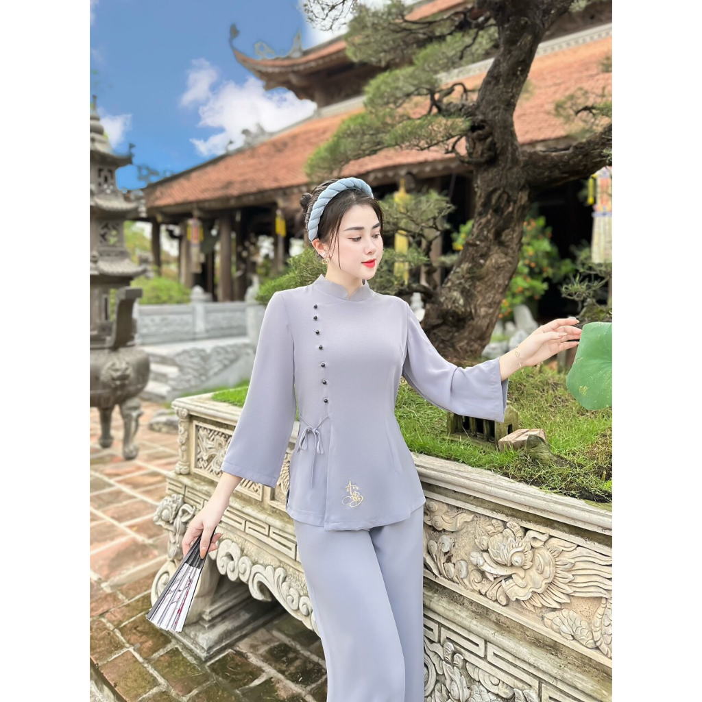 ベトナムの伝統的な民族衣装「アオババ」を現代風にアレンジした上品なツーピースセットです。イタリア産の高級シルク生地を使用し、優雅な光沢と心地よい肌触りを実現しました。伝統的なベトナムファッションの要素を活かしながら、現代的なエッセンスを取り入れたデザインは、日常着としても特別な日の装いとしても幅広くお使いいただけます。