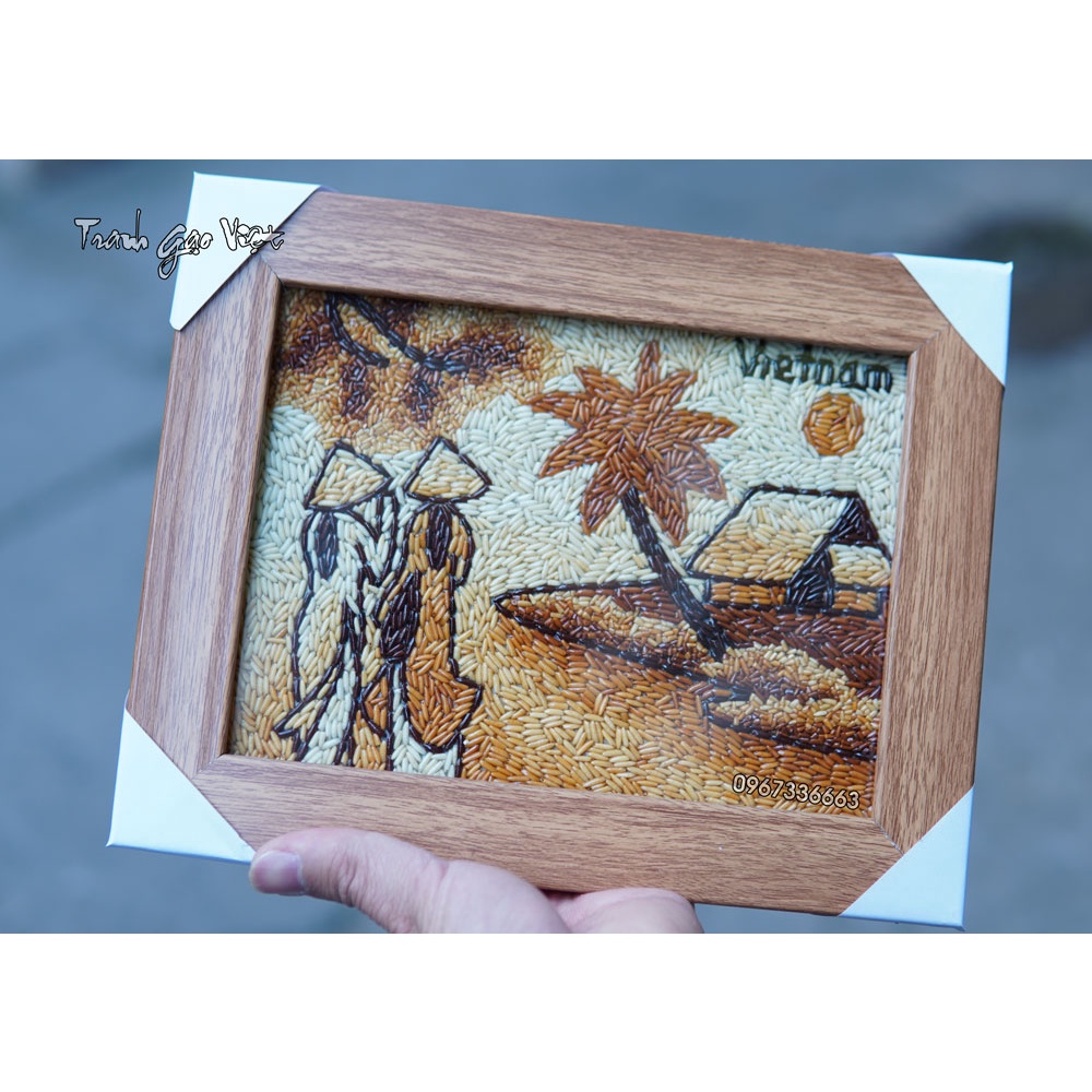 Table rice paintings for two girls in Ao Dai hometown, meaningful handmade Vietnamese gifts for foreigners