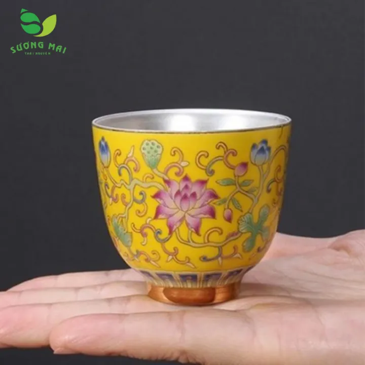 独特な形状と色彩が、このティーカップの魅力を一層引き立てます。丸みを帯びたフォルム、湾曲したハンドル、広い口径、そして細かな底面が特徴的です。カップの中には、蓮の花や朝露を模したシルバースンマイの装飾が施されており、これはベトナム古来のセラミック技術の傑作です。これらの要素が合わさり、あなたのティータイムを豊かな文化的体験へと導きます。