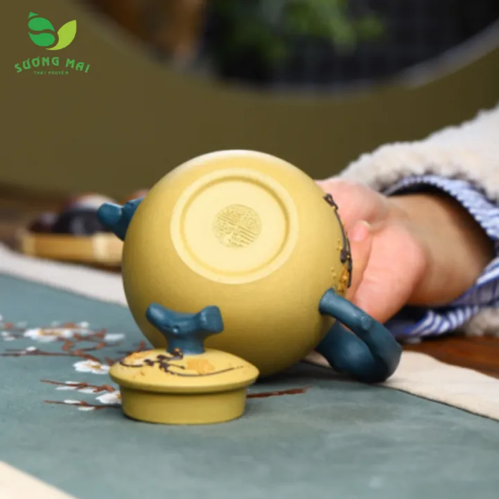 西洋スタイルのティーポットを作る熟練職人によって手作りされ、その形状は美しい女性を連想させる洗練されたデザインです。梅の花のモチーフが施されており、梅はベトナムと日本の伝統文化において回復力と高貴さの象徴とされています。冬に咲く梅の花は、寒さの中でも美しさとロマンスを感じさせます。