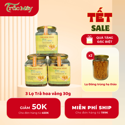 Truc May Truc May 黄色花茶 コンボ 3箱 純天然ガラス瓶入り 30g + ギフト
