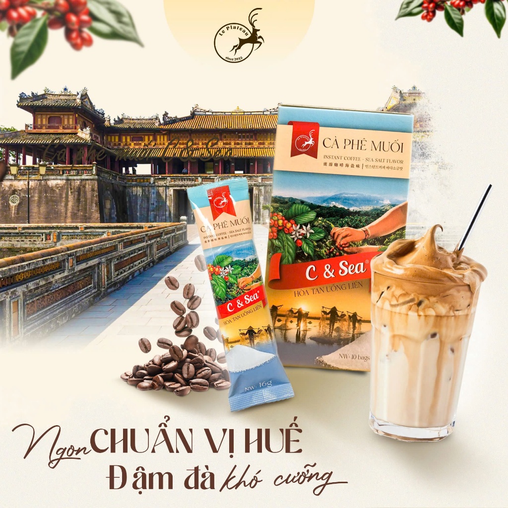 「C&Sea Le Plateau Coffee Cà Phê Muối Hòa Tan Đặc Biệt Thơm Ngon Tiện Lợi」は、ベトナム産の特別な塩味コーヒーです。西原山脈で栽培された濃厚なコーヒーと、ニャチャンの天然海塩が絶妙に調和した一杯を楽しめます。従来のコーヒーとは異なる、新しい味わいを堪能でき、塩味がコーヒーの苦味を和らげ、リッチな風味を引き立てます。さらに、最新の技術で作られたクリーミーなミルクフォームが、コーヒーに滑らかでまろやかな口当たりを加え、特別な一杯としてご満足いただけます。