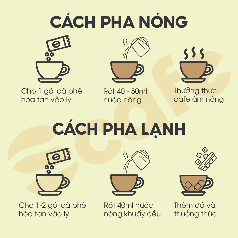 1袋をお湯(60〜80ml)で溶かし、よく混ぜてお楽しみください。氷を加えてアイスコーヒーとしても美味しくいただけます。