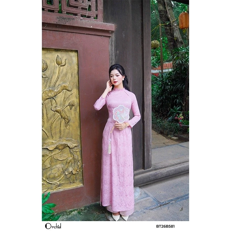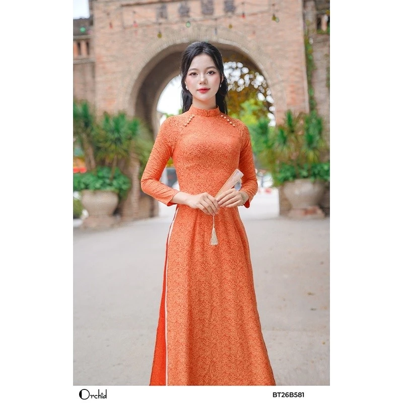 Orchid(オーキッド)の「パール装飾シルクアオザイ&パンツセット - BT26B581」は、最新の秋冬アオザイコレクションから登場した、上品でエレガントなスタイルを演出するセットです。伝統的な立ち襟と長袖のデザインが特徴で、両肩にあしらわれた真珠のボタンが華やかなアクセントとなっています。しなやかに揺れるストレートパンツとの組み合わせは、全体に柔らかく優雅な動きを与え、着用者をより魅力的に見せます。