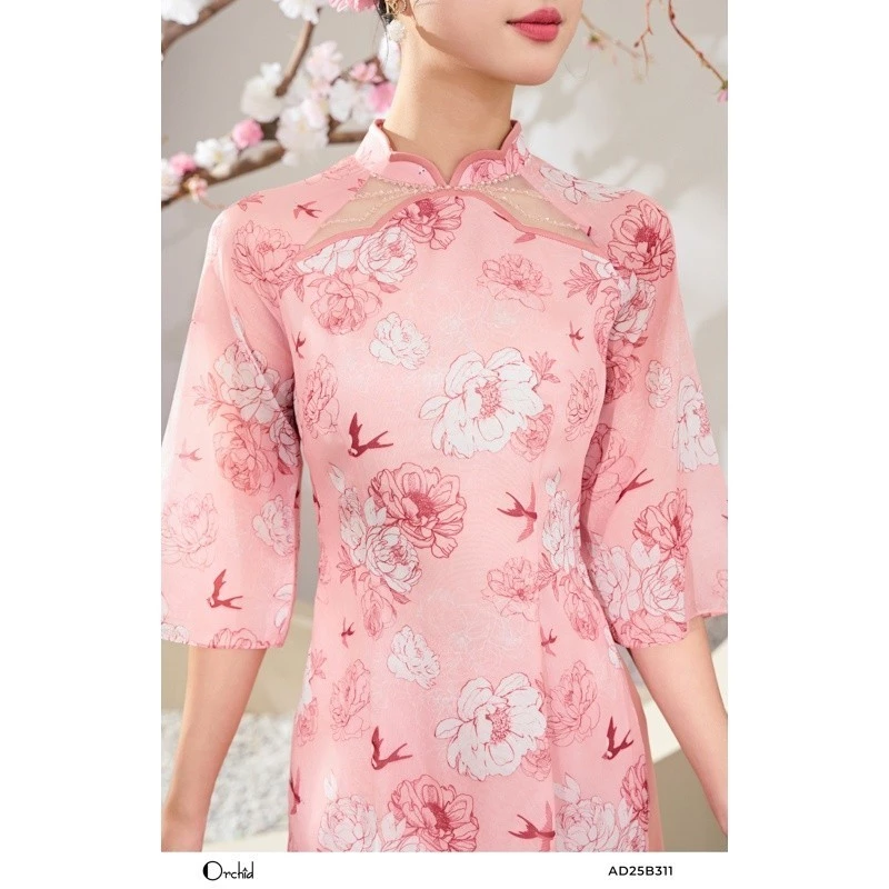 Orchid 高級モダンアオザイ 煌めきシルク 4枚仕立て デザイン柄セットアップ - AD25B311の通販・個人輸入代行販売商品