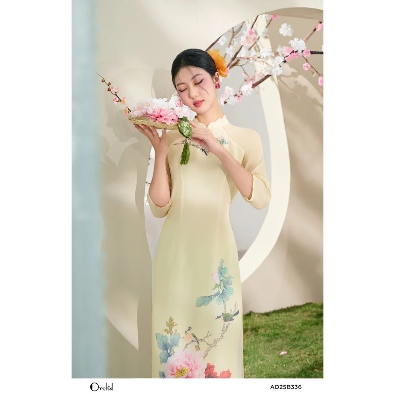 「Orchid(オーキッド)」ブランドのAD25B336は、ベトナムの伝統美と現代的な洗練されたデザインが融合した、特別な日のための高級アオザイセットです。