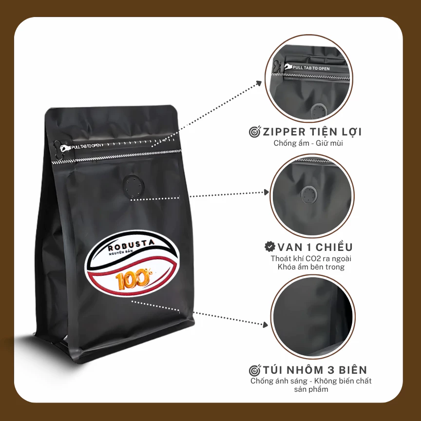 このブレンドは、しっかりとした飲みごたえがありながらも、口当たりは滑らかで、心地よい余韻が長く続きます。添加物や香料を一切使用せず、純粋な生豆を丁寧に焙煎した「無添加焙煎(rang mộc)」であるため、豆本来の豊かな風味を最大限にお楽しみいただけます。