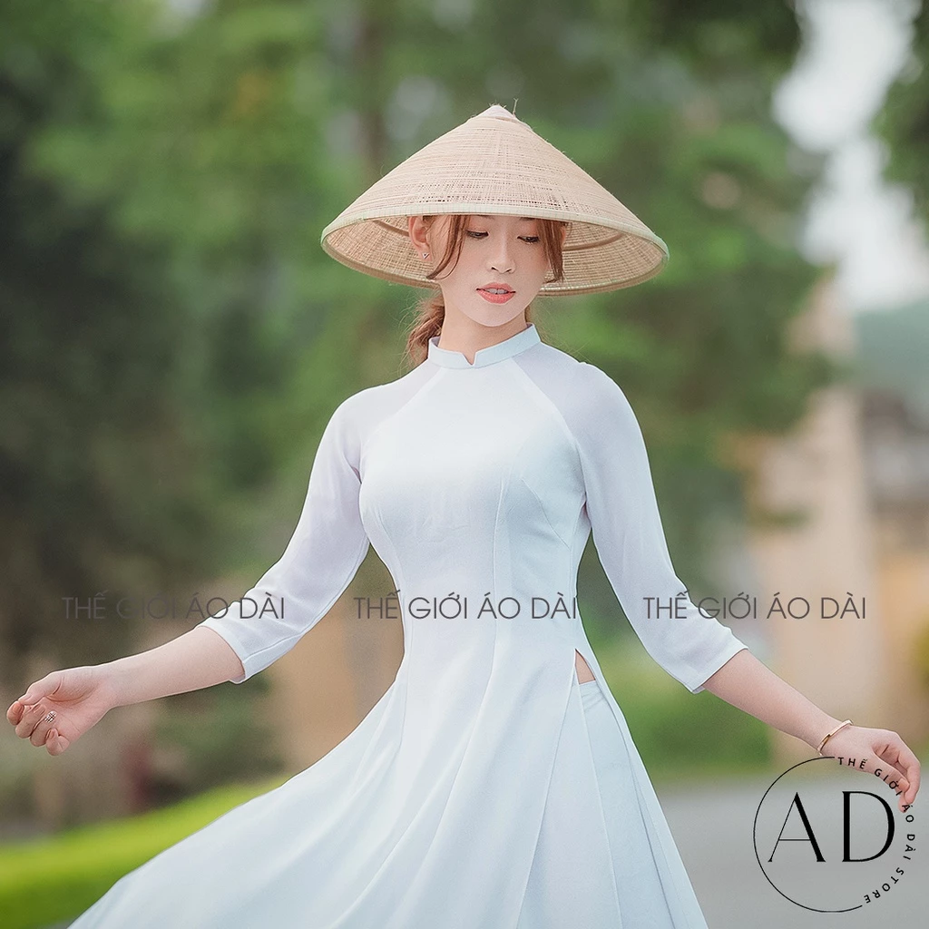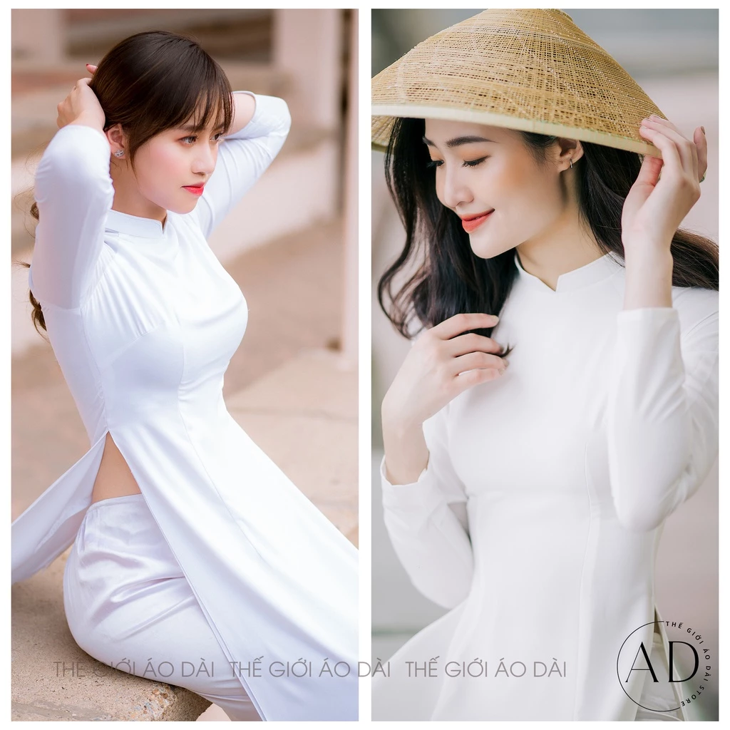 The Gioi Ao Dai White 4-Panel Traditional Ao Dai for Female Students - V-Neck, Thin, Lightweight, Stretch Fabric, Multi-Size - Youthful School Wear