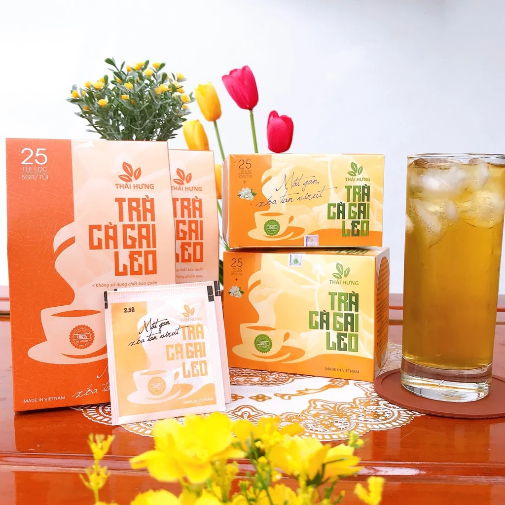 THAI HUNG Premium Cà Gai Leo Liver Support Tea 100% Natural Herbal Blend Detox & Heat-Clearing 25 Tea Bags