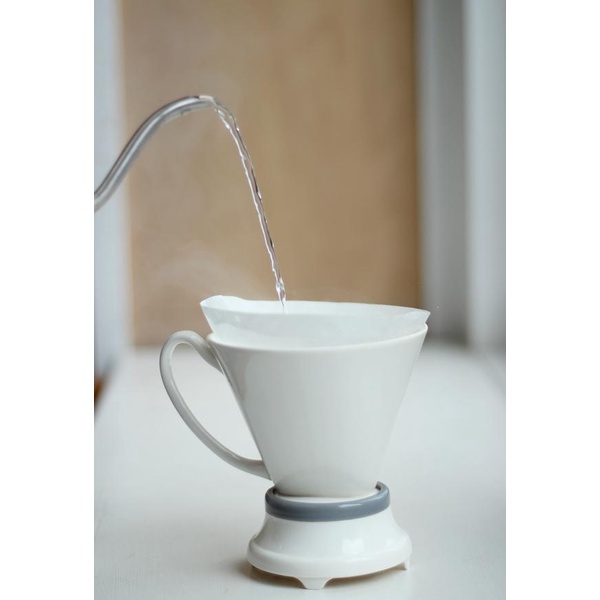 V60ドリッパーに装着し、コーヒー粉を入れて、お湯をゆっくりと注ぐ。