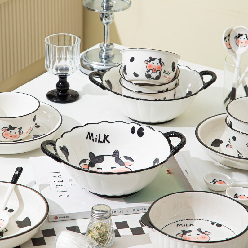 このディナーウェアセットの最大の魅力は、職人による繊細な描写と独創的なデザインにあります。白と黒のコントラストが特徴的な乳牛の柄は、各皿に生き生きとした個性を吹き込み、普通の食事を特別な体験に昇華させます。優れた陶器の質感と洗練されたデザインは、モダンでありながら温かみのある食卓空間を演出します。