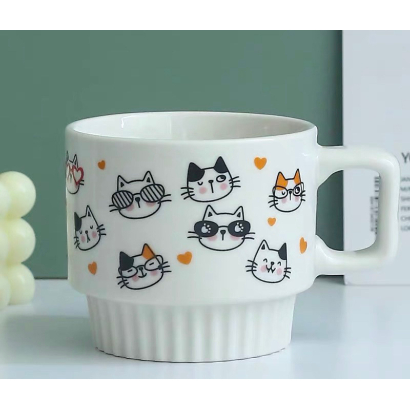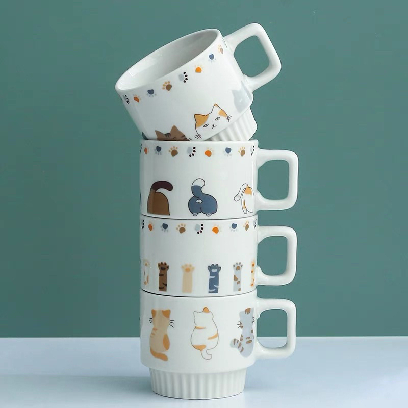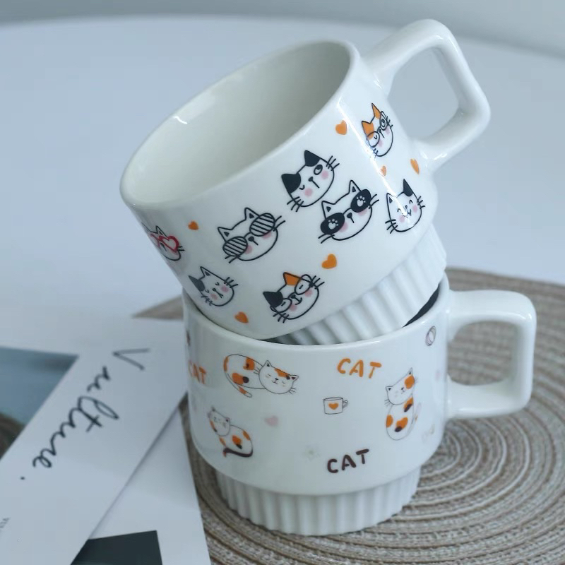 Sweet Cat Ceramic Mug 可愛い猫デザインのペアマグカップ 魚型スプーン付きの通販・個人輸入代行販売商品