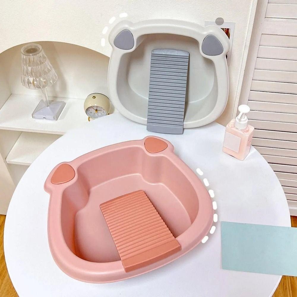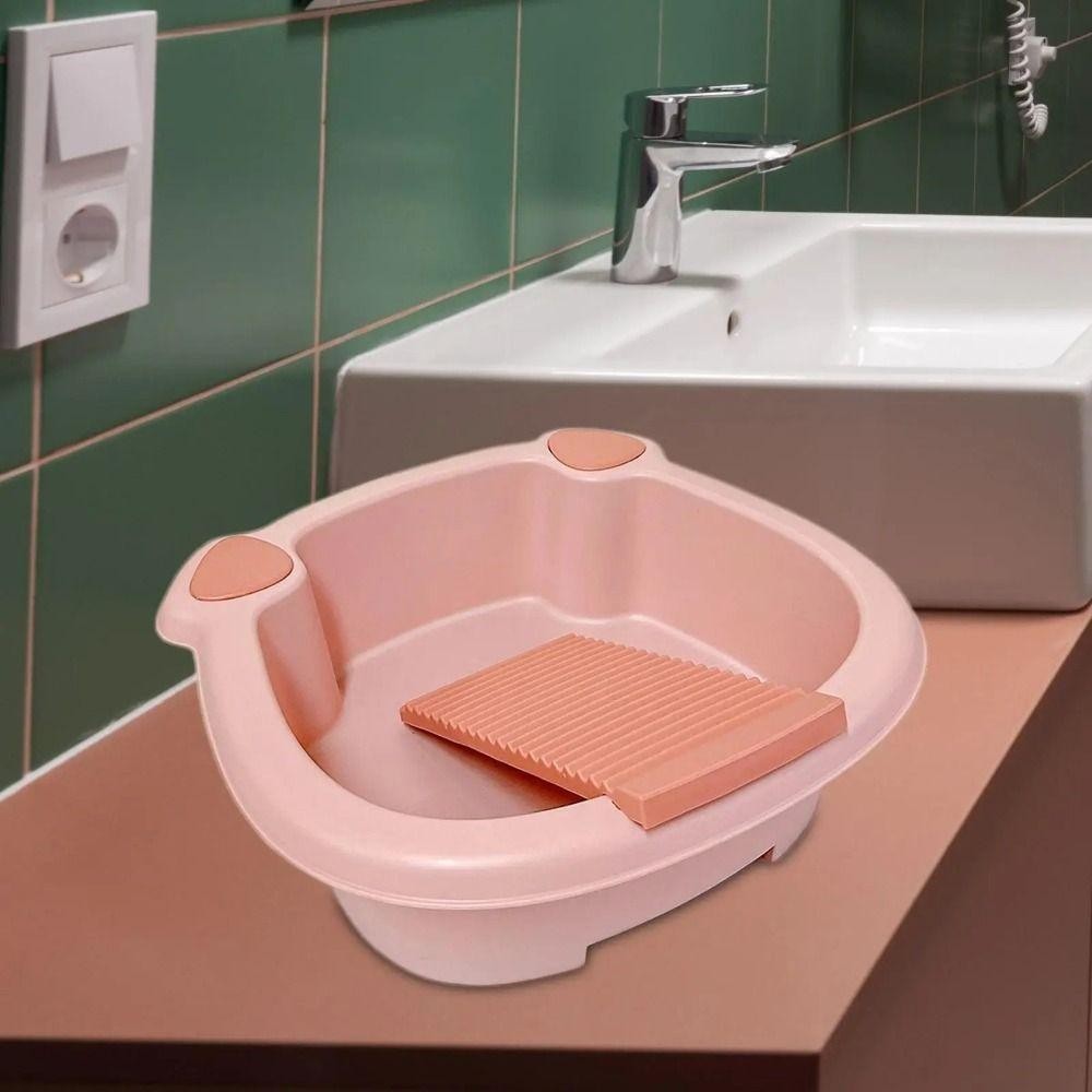 Washboard Bucket Integrated Hand Wash Basin Anti-slip Durable Plastic Size S Pink SDFG
