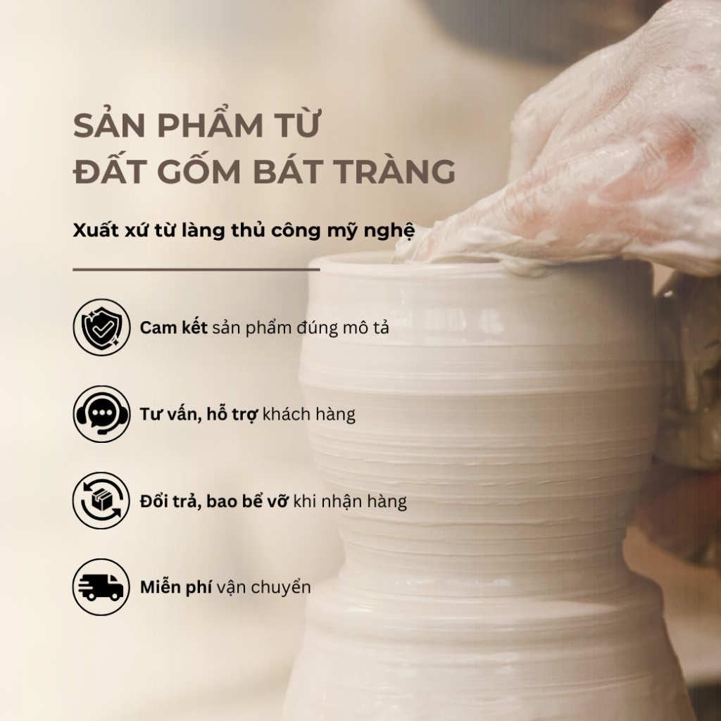 Bát Tràngの陶磁器は高温で焼かれ、非常に丈夫で長持ちします。表面は滑らかで、触り心地がよく、簡単にお手入れできます。また、自然で温かみのある色合いが特徴で、どんなシーンにも馴染みます。ベトナム文化の深さを感じるこのセットは、インテリアとしても優れたアクセントとなり、見た目の美しさだけでなく実用性も兼ね備えています。