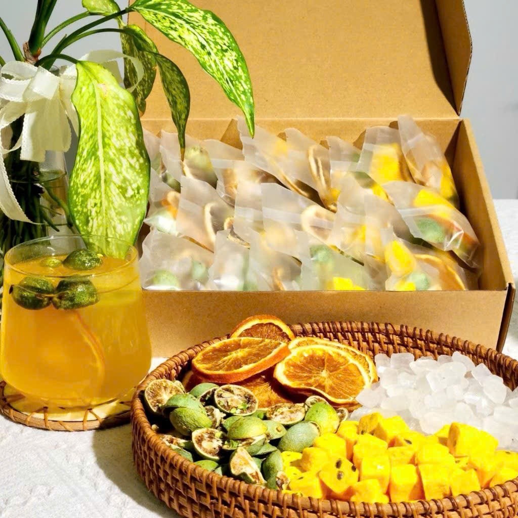 VITEA トラ チャン ダイ キム クアットは、体温調整と美白効果をサポートする、4種のハーブを使用した飲み物です。パッションフルーツとキムクアットの爽やかな酸味と甘みが特徴で、さらに4種のハーブの効果を取り入れることで、体の内側から美と健康をサポートします。自然な成分で作られたこの飲み物は、デトックス効果や美肌効果があり、特に夏の暑さで体が疲れたときにぴったりです。