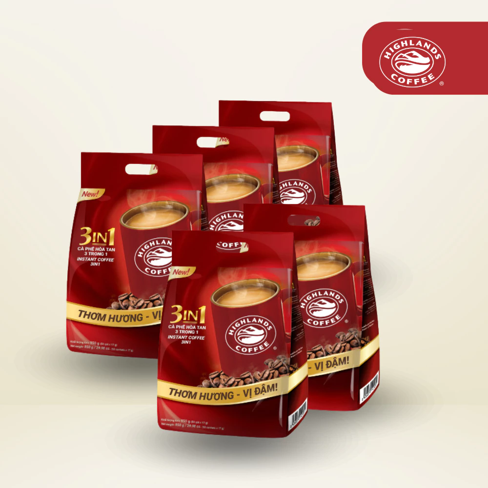 Highlands Coffee 3-in-1 Instant Coffee Big Pack - 50 Sachets x 5 Bags Combo | Authentic Vietnamese Cafe Experience