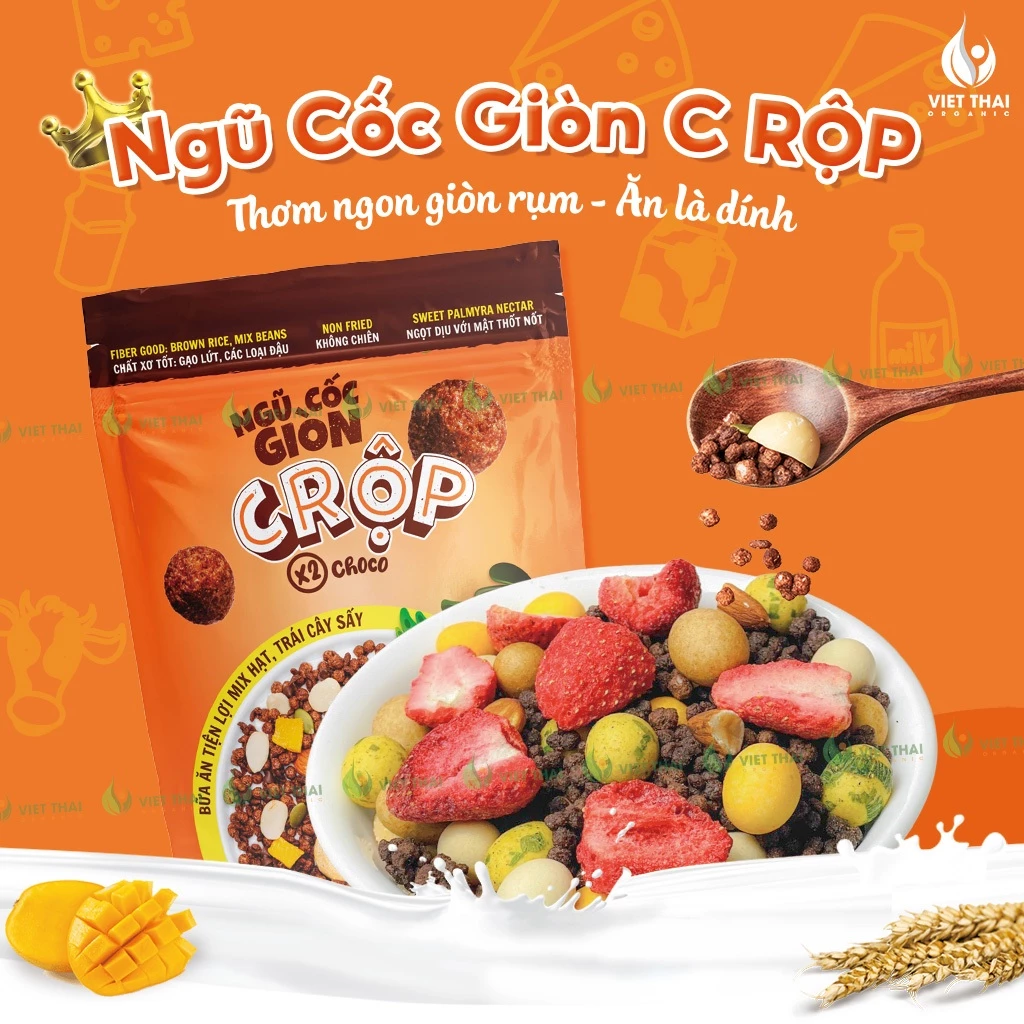 Viet Thai Organic Crunchy Granola Choco Mix & Dried Strawberry Low Sugar 600G Breakfast Cereal