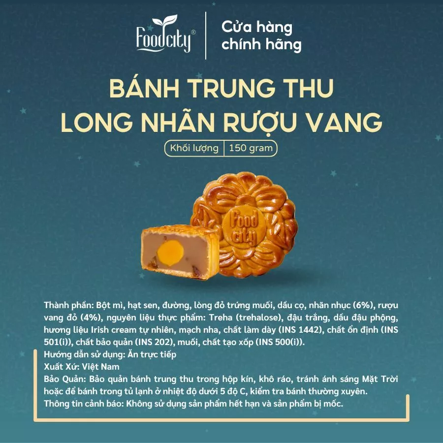 FoodCity Vietnam Longan Red Wine Salted Egg Yolk Mooncake 150g