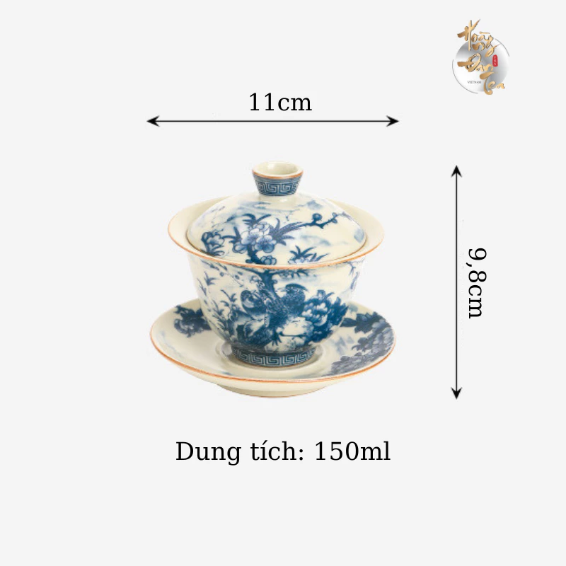 Jingdezhen Spring Autumn Antique Glazed Gaiwan 150ml HOÀNG ĐAN TEA Master Cup for Tea Ceremony with Premium Gift Box