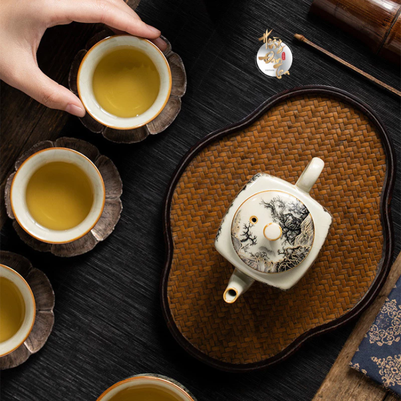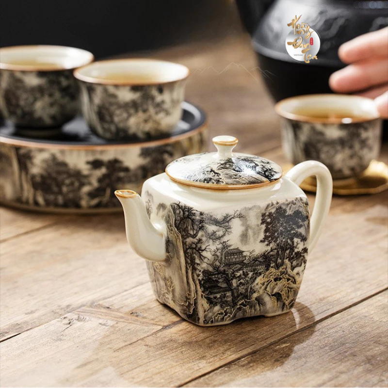 Jingdezhen 'Ink Wash Beauty' Teapot HOÀNG ĐAN TEA 175ml - Ideal for Tea Ceremony & Premium Gift