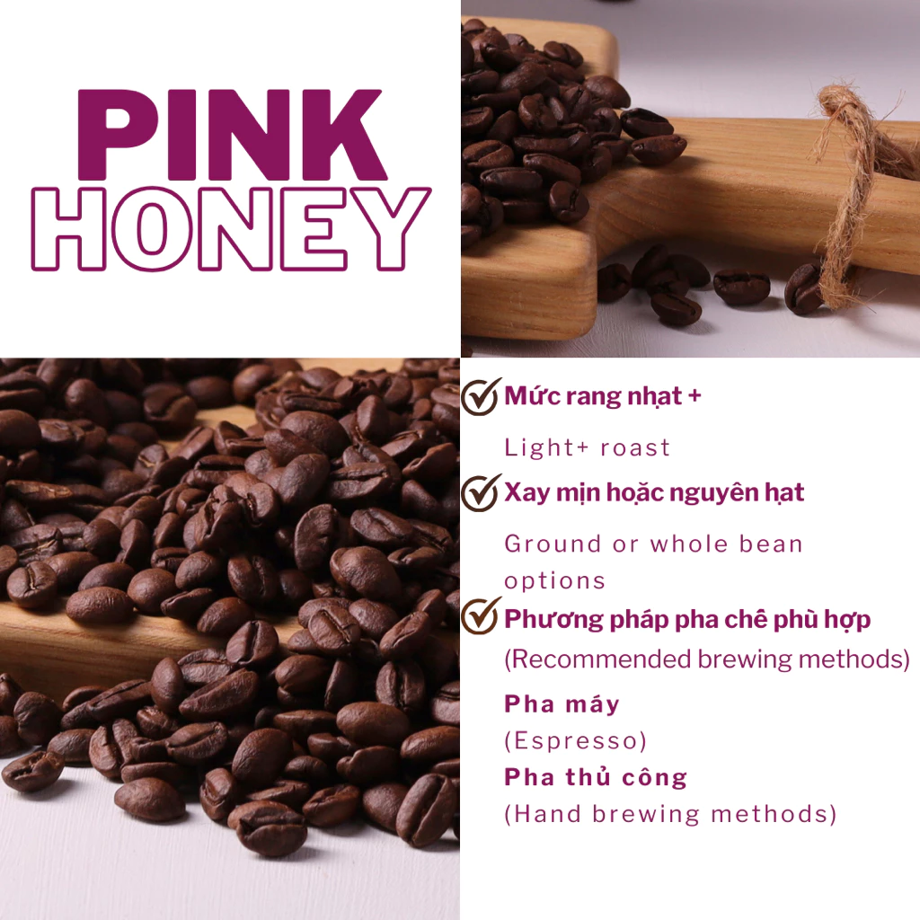 Pink Honey [Light Roast+] Specialty Arabica Coffee Beans from Langbiang, Vietnam - Whole Bean 500g Bag