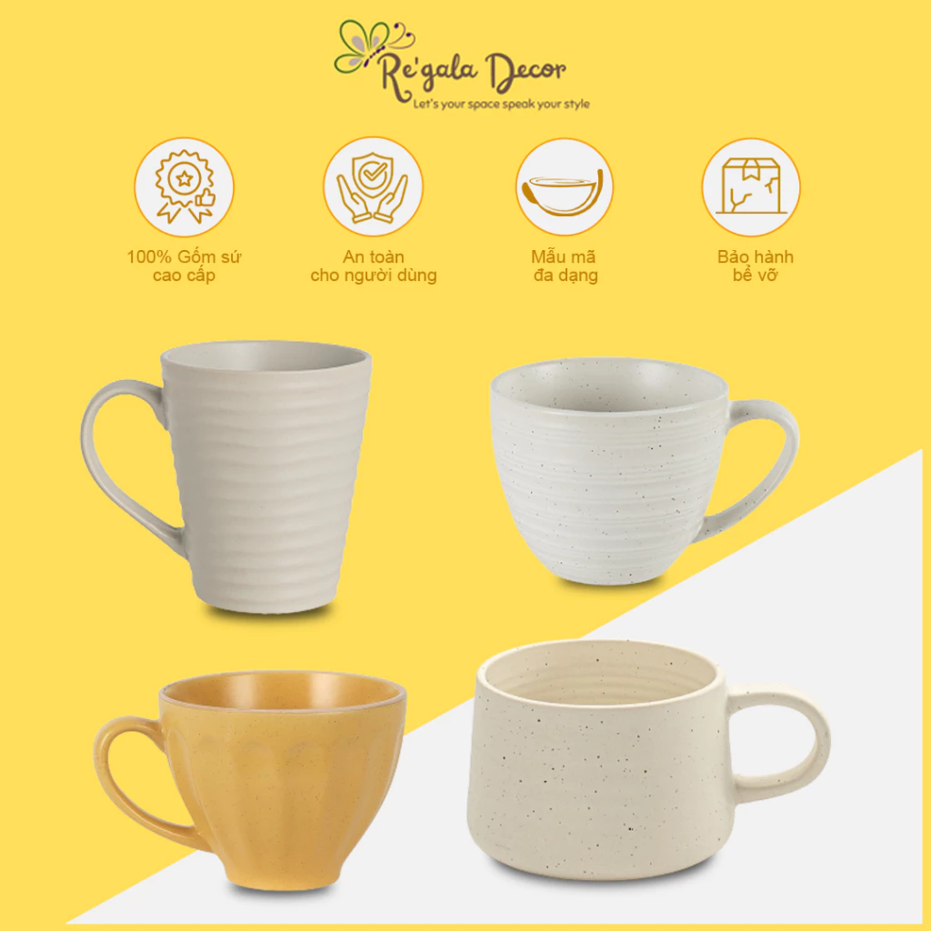 Re'gala Decorの最初の魅力は、その純粋な白さと、ミニマルでありながらも魅力的なデザインにあります。このシンプルさは決して退屈ではなく、むしろその純粋な美しさと品格を引き立て、クラシックからモダンまで、あらゆるインテリア空間に容易に溶け込みます。カップのラインは細部にまでこだわって丁寧に作られており、手に取った際にバランスの取れたしっかりとした感触を与えます。表面には高級セラミック釉薬が施され、ベルベットのように滑らかで、見た目の美しさだけでなく、汚れがつきにくく、何度も使用しても新品のような輝きを保ちます。人間工学に基づいて設計されたハンドル(もしあれば)は、温かい飲み物を使用する際に快適でしっかりとしたグリップをもたらします。高品質と卓越した耐熱性