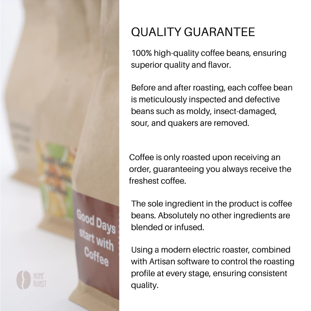 手間暇をかけた製法を経て、コーヒー豆は中煎り(ミディアムロースト)に焙煎されます。この焙煎度合いは、ロブスタ本来の力強い風味と、ブラックハニープロセスによって生まれたプルーンのような独特な香りの両方を最大限に引き出すための完璧なバランスです。中煎りにすることで、豆が持つ複雑な香りを失うことなく、深みのあるブラウンの色合いと豊かなアロマが引き出されます。