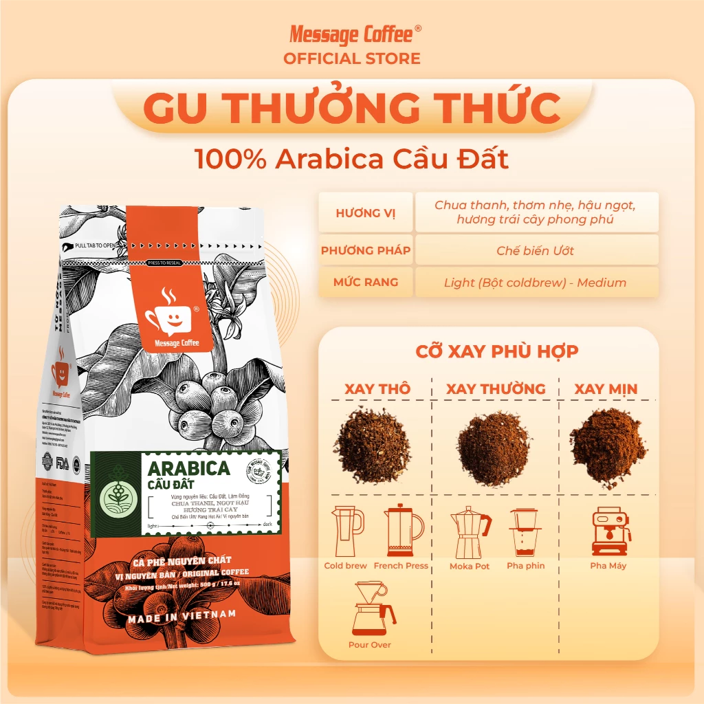 Cầu Đất Arabica 100% Pure Coffee Powder - Finely Ground for Phin & Espresso, Sweet Aromatic Aftertaste - 200g