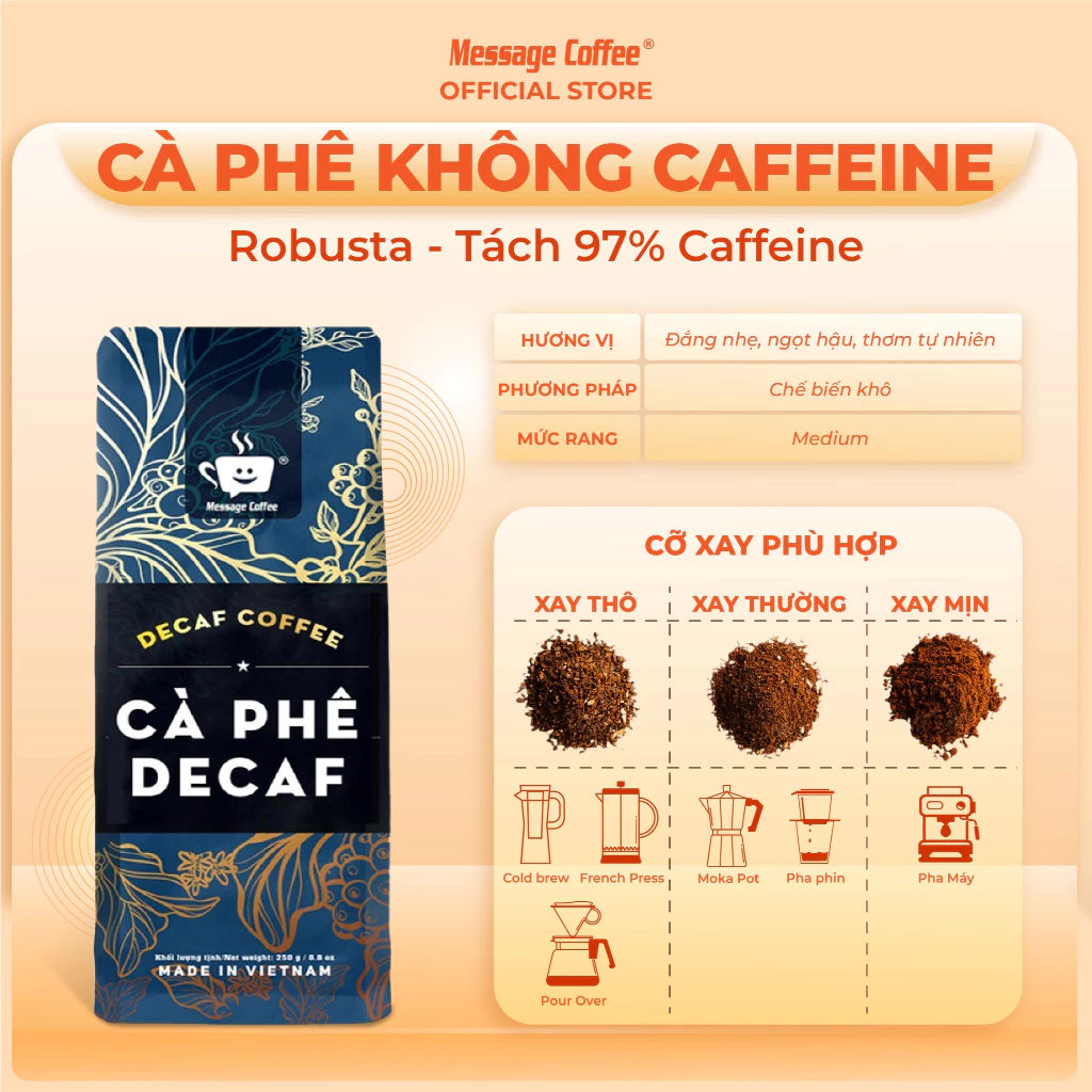 Premium Decaf Robusta Coffee Powder Fine Grind for Phin - Caffeine-Free, Low Bitterness, For Caffeine Sensitive, No Sleeplessness, 200g Pack