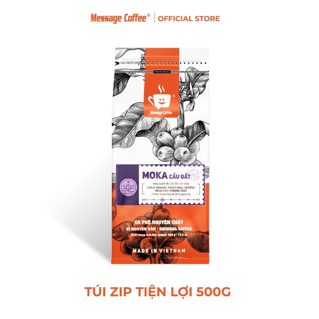Message Coffee Premium Cau Dat Moka 100% Raw Roasted Ground Coffee for Cold Brew, 500g