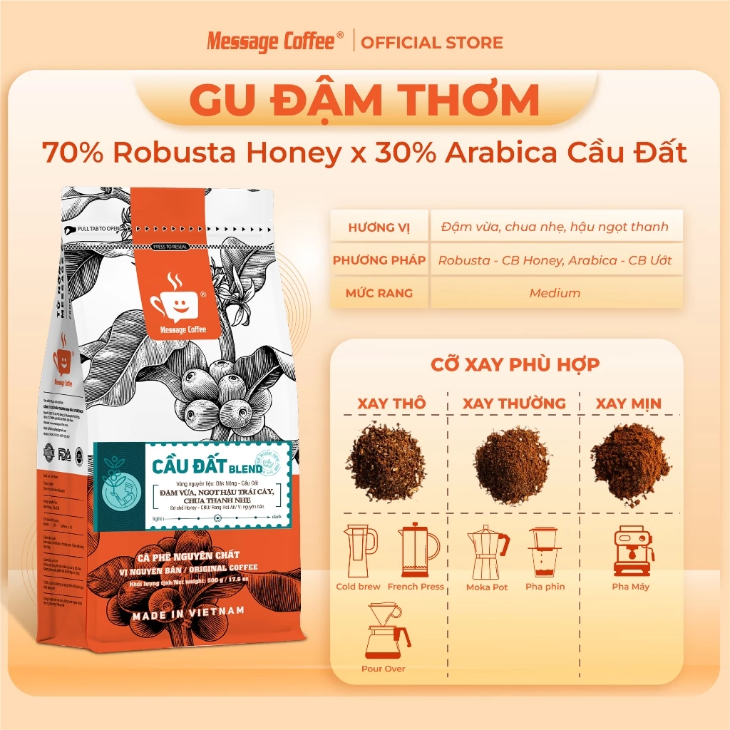 Message Coffee Cau Dat Blend 100% Wood-Roasted Pure Ground Coffee 2KG Combo Pack - Alluring Aroma & Sweet, Mild Bitterness