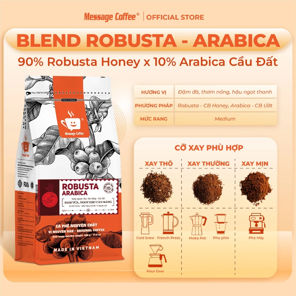 Message Coffee Special! Robusta & Arabica Blend Coffee 2kg - Large Capacity (Whole Bean or Ground) - 100% Pure Roasted, For Phin & Espresso