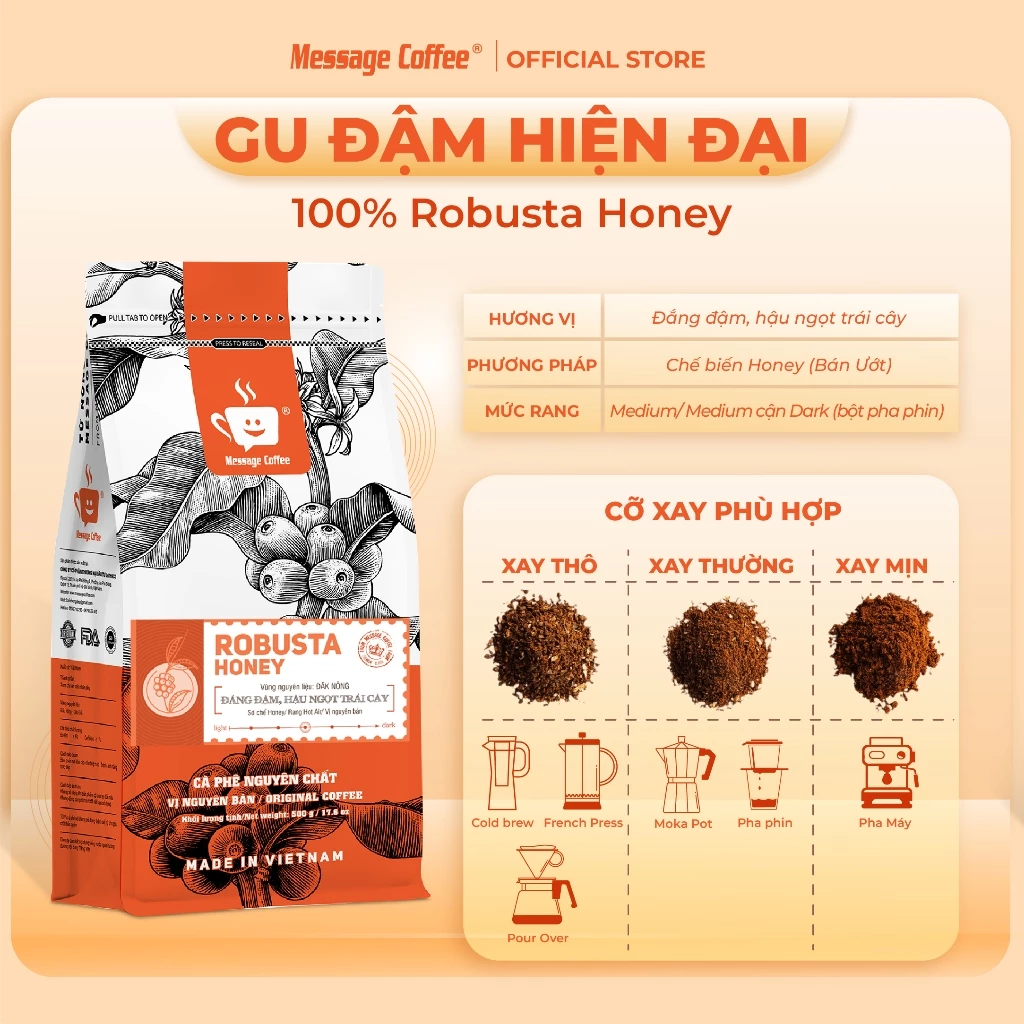 COMBO 2kg Message Coffee Special Robusta Honey Process Coffee Beans (Whole/Ground), 100% Pure & Additive-Free from Vietnam
