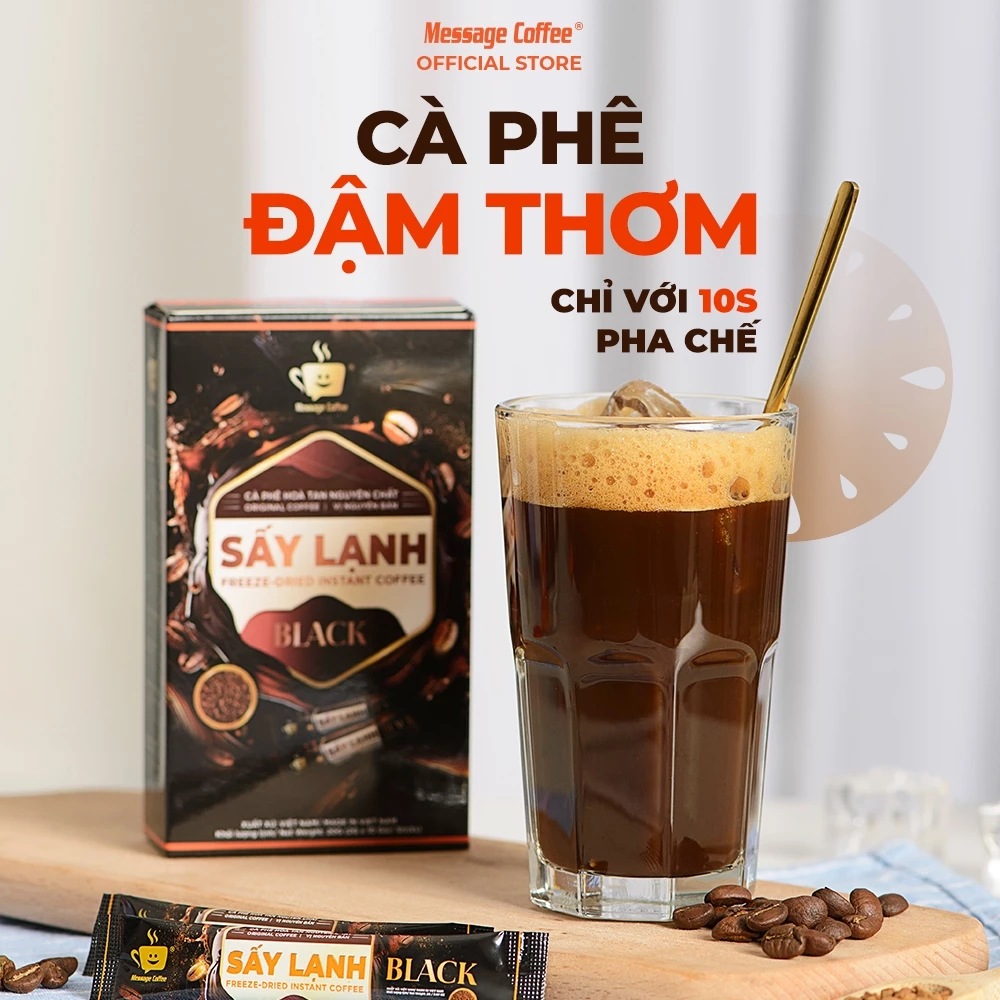 Message Coffee BLACK Freeze-Dried Instant Coffee, Pure Roasted Ground Coffee Essence, Convenient 10 Sticks (2g per stick)