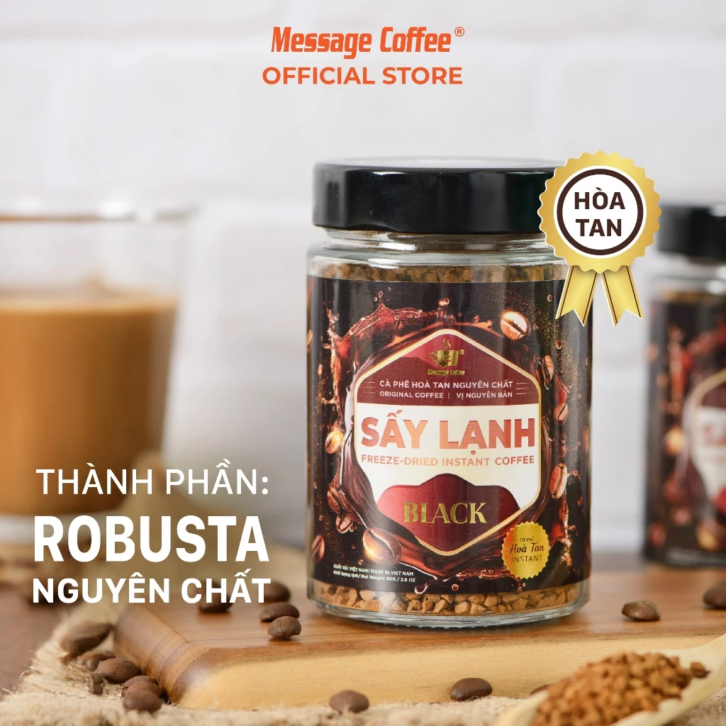 Message Coffee BLACK Freeze-Dried Instant Coffee, Rich Flavor, Pure Roasted Coffee Extract, Convenient, Ready-to-use, 80g Jar