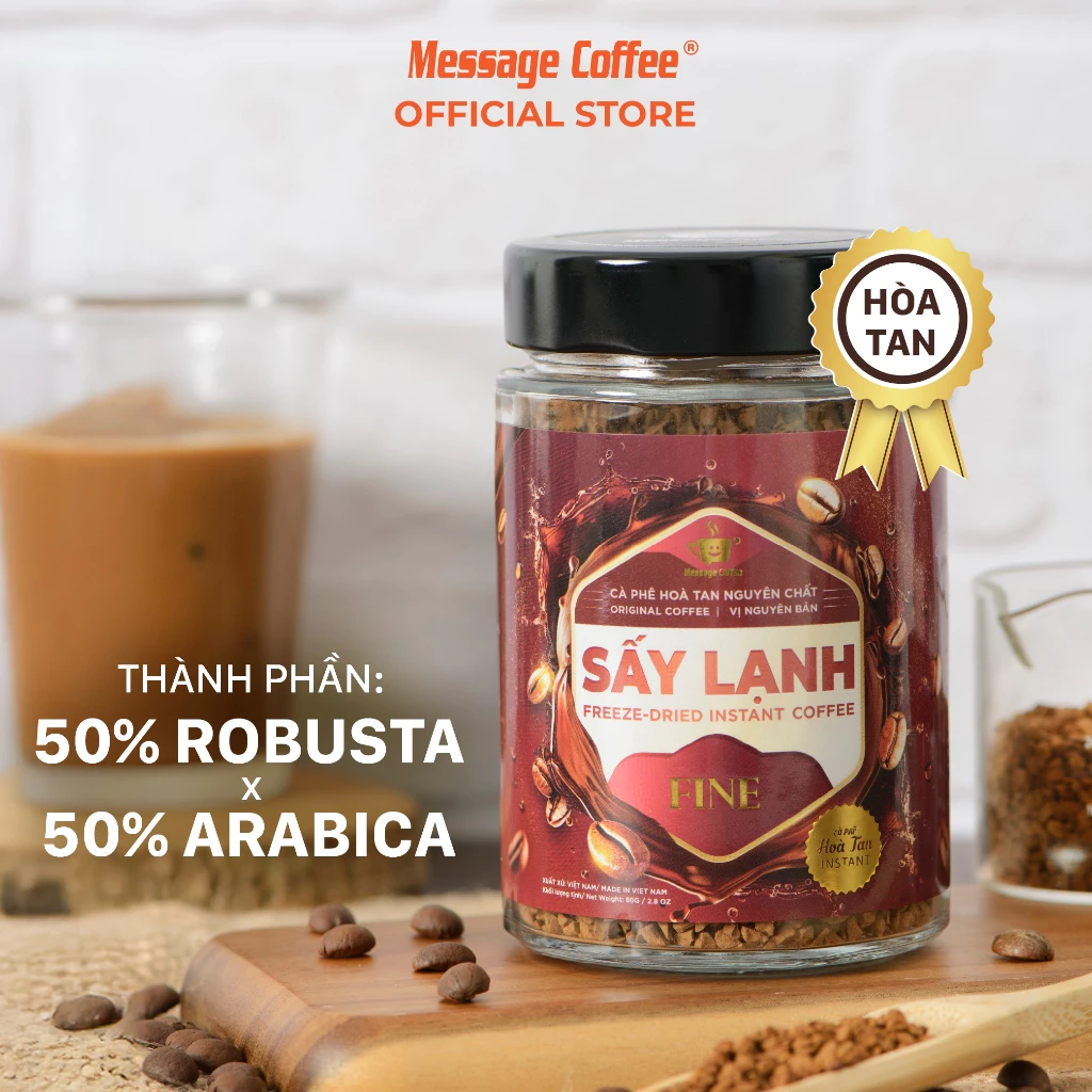 Message Coffee FINE Premium Freeze-Dried Instant Coffee, Pure Roasted & Ground Essence, Convenient, Ready-to-Drink, 80g Jar