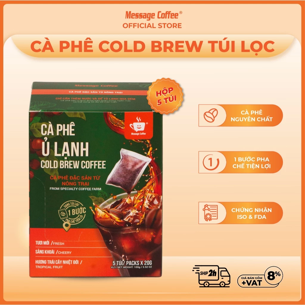Message Coffee Cầu Đất Arabica Cold Brew Filter Bag (5 sachets x 20g) - One-Step Easy Brewing Coffee